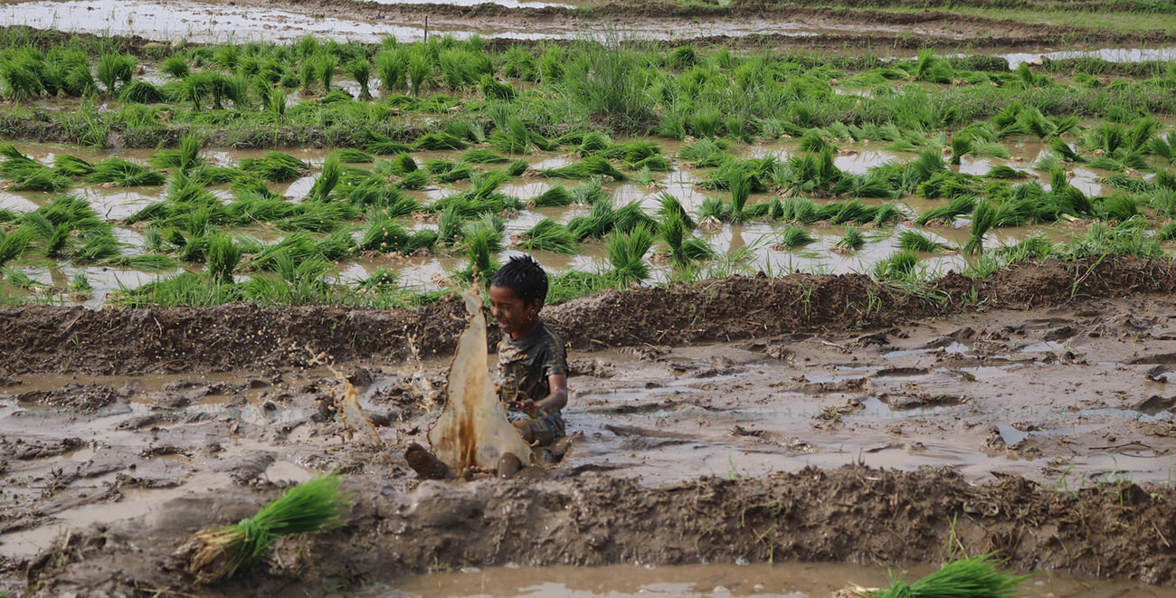 42 Shares -A A +A राष्ट्रिय धान दिवसको अवसरमा मंगलबार बिहान दाङको तुलसीपुर-७ मा धान रोप्ने खेतमा रमाइलो मान्दै खेलिरहेका एक बालक। तस्बिर- नारायण खड्का प्रकाशित मिति : १५ असार २०७८ मंगलबार ००:०० १ : ४९ बजे