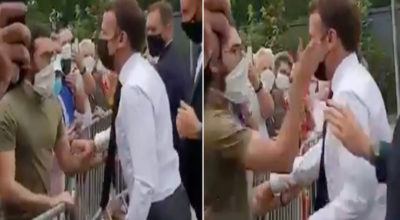 काठमाडौं । फ्रान्सका राष्ट्रपति इमानुएल माक्रोंमाथि दक्षिणी फ्रान्सको भ्रमणका क्रममा एक व्यक्तिले झापड हानेका छन्।बाटोमा