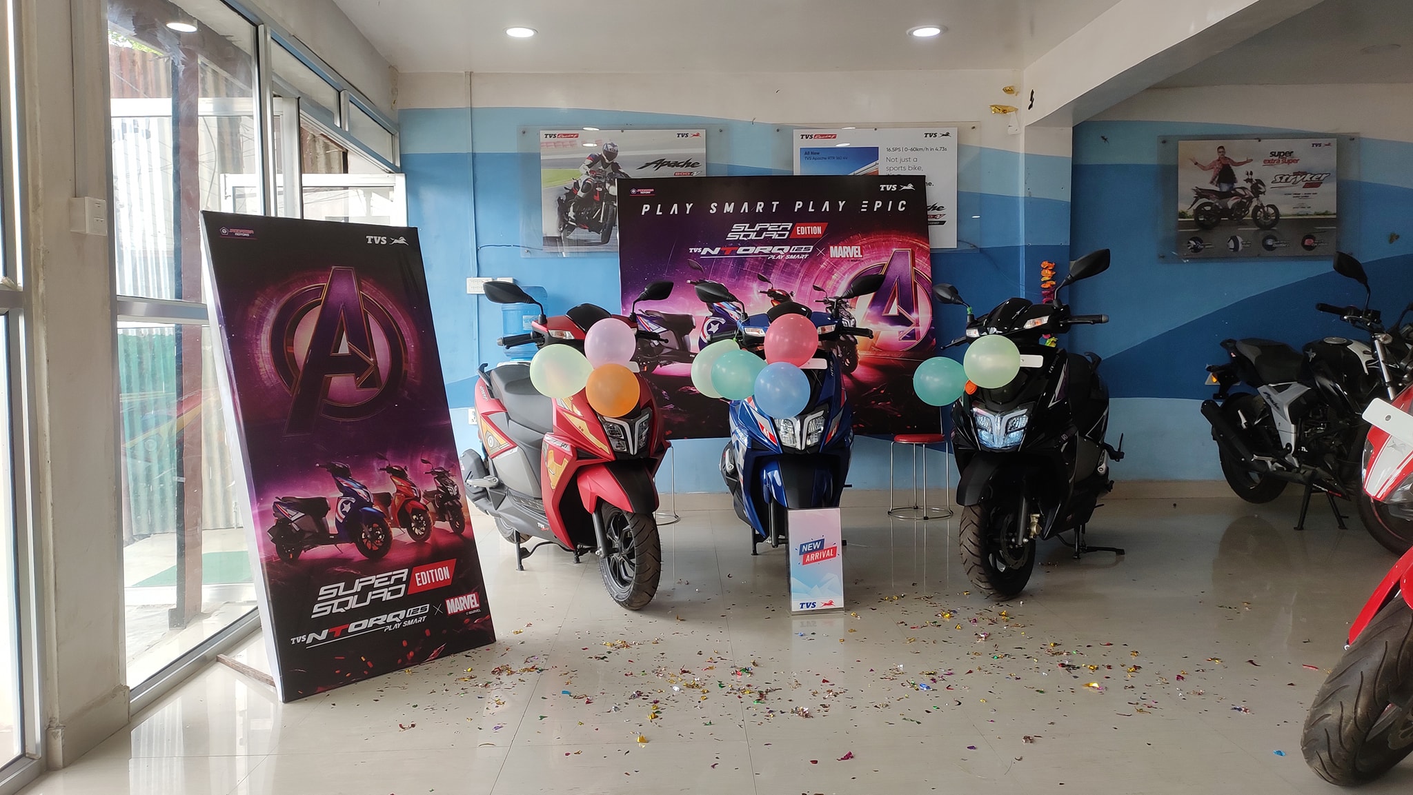 टिभीएस मोटर कम्पनीको मार्भल्स अभेन्जर्सबाट प्रेरित टिभीएस एनटर्क १२५ सुपरस्क्वाड संस्करण कपिलवस्तुको जितपुर चार नम्बरमा सार्वजनिक भएको छ । टिभीएस मोटर कम्पनीको नेपालका लागि आधिकारिक विक्रेता जगदम्वा मोटर्स प्रालिले बजारमा ल्याएको दुई पाङग्रे सुपरस्क्वाड संस्करण बुधवार कपिलवस्तुको लागि आधिकारिक विक्रेता वाणगंगा अटो टे«डर्सले सार्वजनिक गरेकोे हो ।
