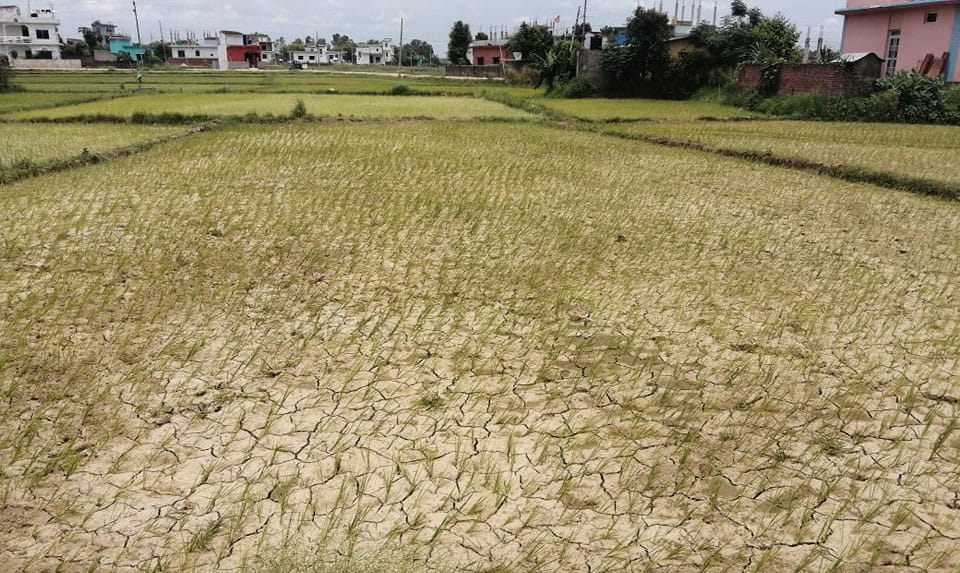 ‘यसपालि असारको सुरुमै राम्रो पानी परेको थियो। किसानले बिउ राख्न र रोप्नसमेत पाए। त्यसपछि पानी पर्न रोकियो,’ ढकालले भने, अहिले खेत सुकिसकेको छ। धान मर्न थालेका छन्।’