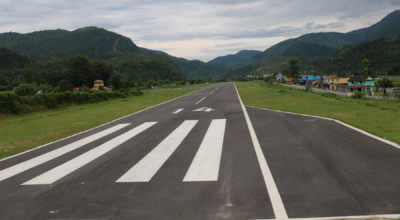 डोटीको दिपायल विमानस्थलको धावनमार्ग । यो विमानस्थलमा ७२ सिटको जहाज चलाउने मागसहित धावनमार्ग स्तरोन्नतिका लागि