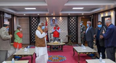 काठमाडौं । नेकपा माओवादी केन्द्रका अध्यक्ष पुष्पकमल दाहाल प्रचण्डले एमाले वरिष्ठ नेता माधवकुमार नेपाललाई भेटेका