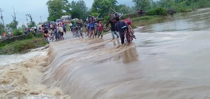 बेपत्ता पुरुषको खोजीकार्यभैरहेको छ । भलवाडजोड्ने सडकमा रहेका २ वटा कज्वेका कारण पानी पर्दा स्थानीयलाई समस्या परेको छ । यस अघिपनि उक्त कजवेमा आएको बाढीले मोटरसाइकल बगाएको थियो । भने गतवर्षपनि कजवेमा आएको बाढीका कारण ठूलो जनधनको क्षती भएको थियो । भलवाड जोड्ने उक्त सडकमा पुल बन्न नसक्दा हरेकवर्ष स्थानीयले सास्ती खेप्नुपरेको छ भने । स्थानीय जोखिम मोलेरै यात्रा गर्न बाध्य छन् ।