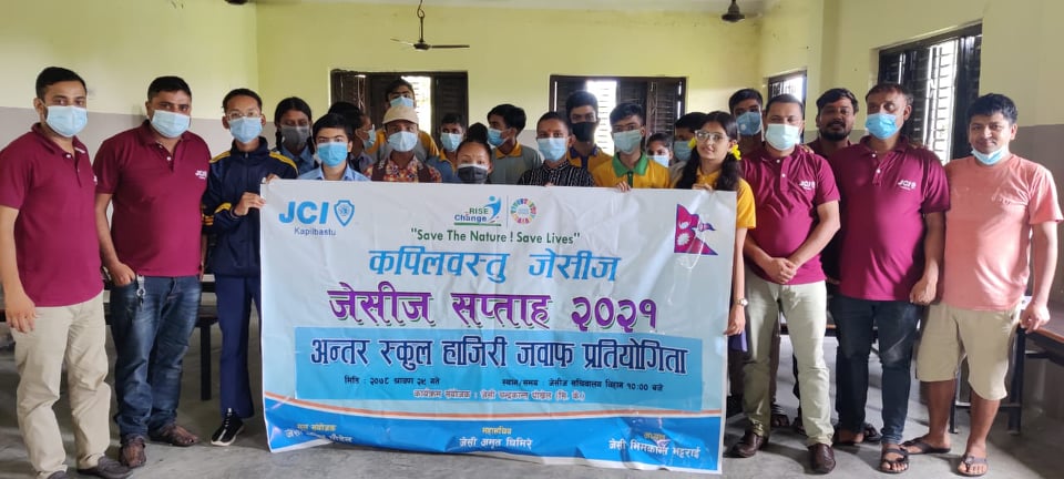 कपिलवस्तु जेसीजद्वारा संचालित जेसीज सप्ताह अन्तर्गत आज अन्तरस्कुल हाजिरीजवाफ प्रतियोगिता सम्पन्न भएको छ । बाणगंगा नगरका ६ ओटा बिद्यालयको सहभागीता रहेको प्रतियोगितामा जनता नमुना मा बि पिपरा प्रथम, सिद्धार्थ मा बि बुंची दोस्रो, बाणगंगा मा बि गजेहडा तथा आवर विज्डम बोर्डिंङ तेस्रो स्थान प्राप्त गर्न सफल भएका छन । जेसिजका अध्यक्ष भिमकांत भट्टराईको अध्यक्षता र कपिलबस्तु जेसीजका पुर्व अध्यक्षय पोस्टराज गौतमको प्रमुख आतिथ्यतामा कार्यक्रम सम्पन्न भएको थियो । चन्द्रकान्त पोख्रेलको स्वागत मंतव्य रहेको कार्यक्रम महासचीव अमृत घिमिरे र कार्यकारिणी उपाध्क्षय सुशील खत्रीले संचालान गर्नुभएको थियो । कार्यक्रममा राजेन्द्र अर्यालले आस्था पाठ गर्नुभएको थियो ।