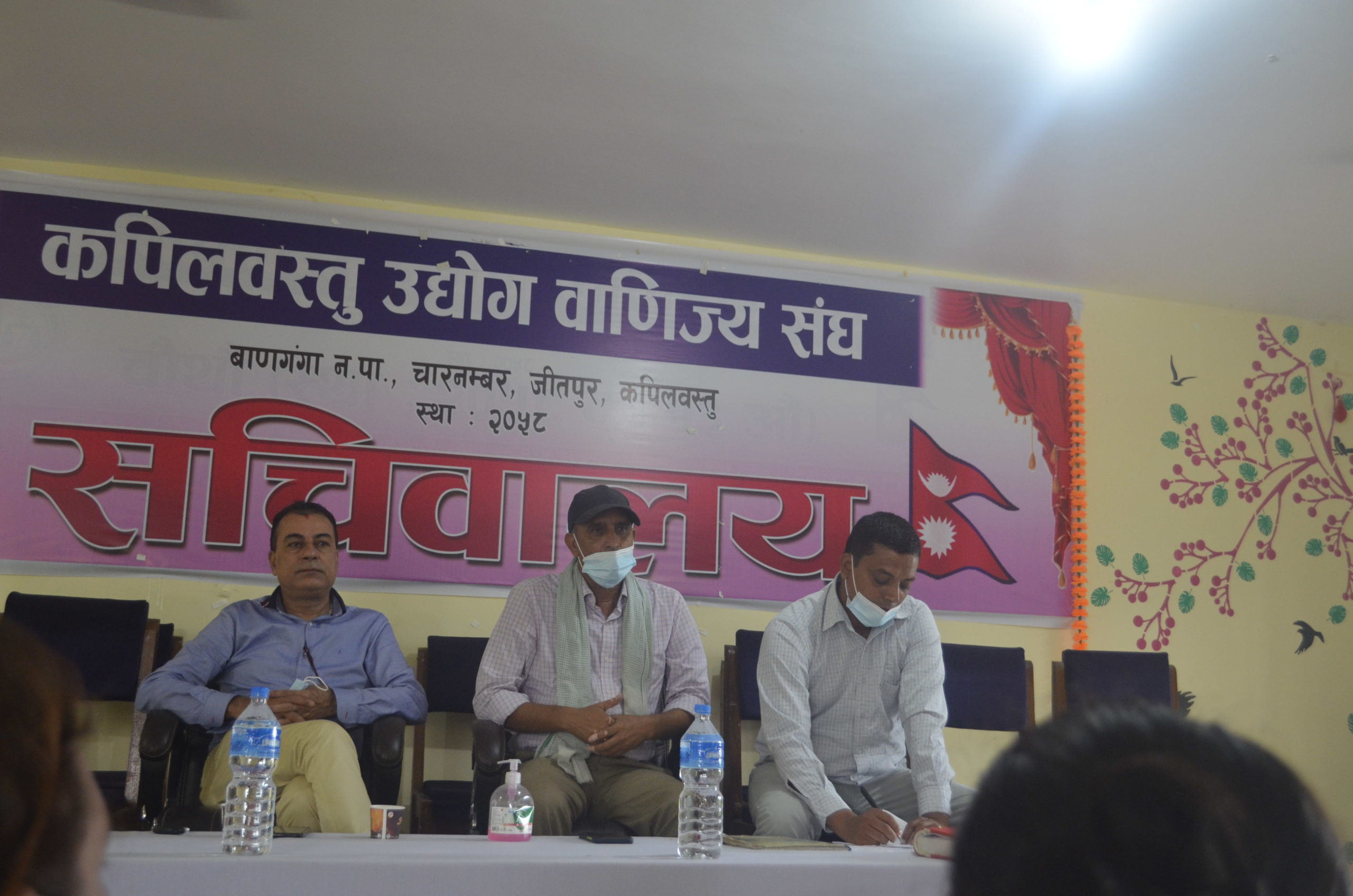 कपिलवस्तु उद्योग बाणिज्य सघंको बैठक सम्पन्न भएको छ । मंगलबार सघंको सभाहल चार नः जितपुरमा पाचौँ नियमित बैठक सम्पन्न भएको हो । बैठकले भोलि बुधबारबाट माक्स बैंक स्थापना गर्ने निर्णय गरेको छ । कोरोना महामारीको तेस्रो लहर आउने चेतावनी आईरहेका बेला अनिर्वाय माक्स लगाउन र भौतिक दुरी कायम राख्न आवश्यक देखिएकाले सघंको पहलमा भोलिबाट माक्स बैंक स्थापना गर्न बाणिज्य उपाध्यक्ष खुमानन्द घिमिरे संयोजक रहने गरि काम गर्ने निर्णय भएको सघंका अध्यक्ष डोलकराम घिमिरेले बताए ।