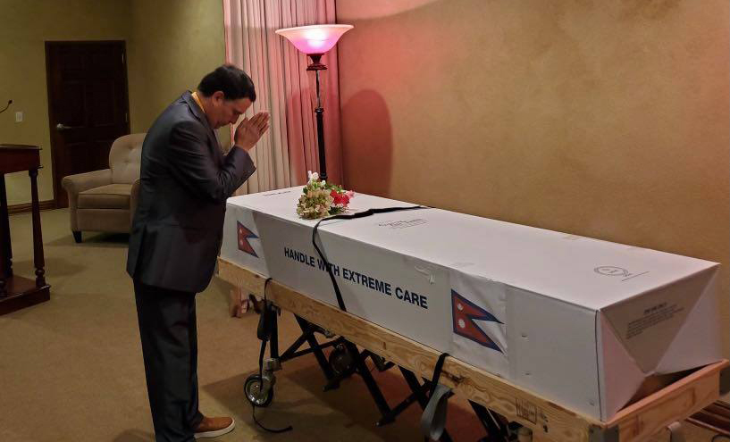 शव सुरक्षित तरिकाले नेपाल पठाउन भ्याली फ्युनेरल होम एप्पलटोनले आवश्यक व्यवस्था गरिसकेको गैर आवासीय नेपाली संघले जनाएको छ । कतार एयरवेजबाट नेपाल पठाउने उडान तालिका रहेको छ । शव नेपाल पठाउन लाग्ने खर्च व्यवस्थापनका लागि गैर आवासीय नेपाली संघ अमेरिकाले विसकन्सिन च्याप्टरको विशेष पहलमा गोफण्डमार्फत रकम संकलन गरेको छ । विसकन्सिन च्याप्टर अध्यक्ष दीपक थापाका अनुसार शव नेपाल पठाउन परिवारको अनुरोध पत्र आएपछि गो फण्डबाट २५ हजार डलर संकलन गरिएको छ ।