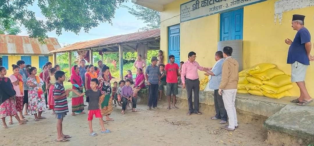 गत विहिवार राती आएको अविरल वर्षापछि भएको डुबानबाट घर भत्किएपछि विस्थापित बनेका परिवारको कष्टपूर्ण स्थितीको बारेमा स्थलगत निरिक्षण पछि सांसद पन्थीले तत्कालका लागि आवश्यक खाद्यान्न र बस्ने म्याट उपलब्ध गराउनु भएको हो । उहाँले चामल, दाल, तेल, नुन, साबुन, विस्कुट र मेट्रसहरु वडा अध्यक्ष सन्तराम थारुलाई हस्तान्तरण गर्नु भएको छ ।