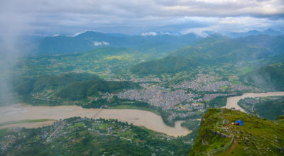 तनहुँको व्यास नगरपालिका–५ स्थित मानुङकोट डाँडाबाट देखिएको दमौली बजार ।तस्वीरः कृष्ण न्यौपाने, रासस