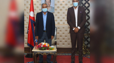 काठमाडौं । प्रधानमन्त्री शेरबहादुर देउवाले राष्ट्रिय क्रिकेट टिमका पूर्वकप्तान पारस खड्कासँग भेटेका छन्। प्रधानमन्त्रीको सरकारी