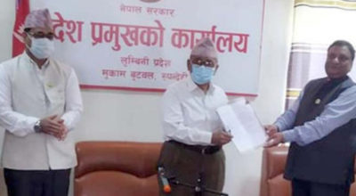 काठमाडौं ।लुम्बिनी प्रदेशमा विपक्षी गठबन्धनले बहुमतको सरकार गठनका लागि दाबी पेश गरेको छ। ४२ सांसदको