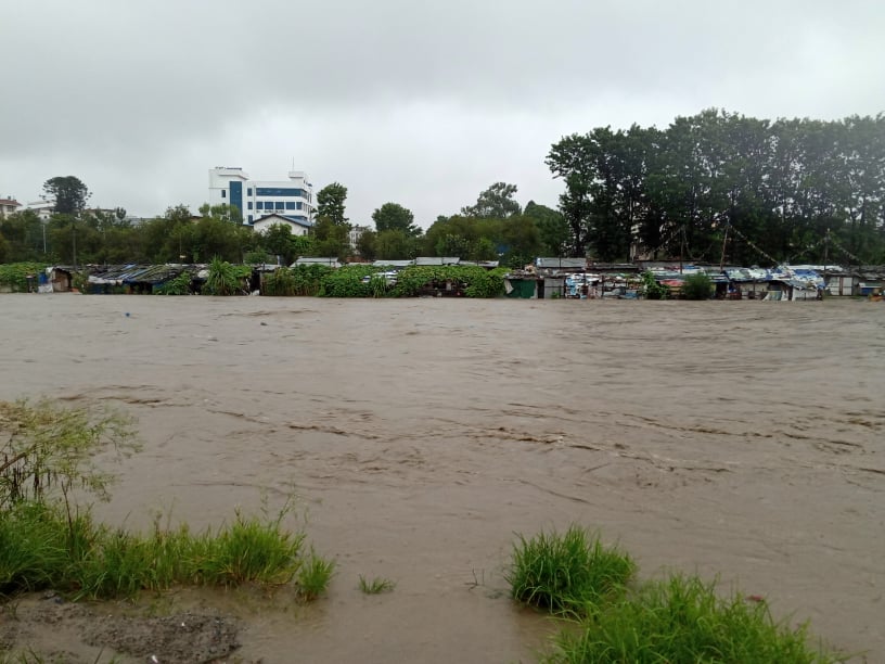 यता गएरातिदेखि परेको ठूलो वर्षाका कारण काठमाण्डौ उपत्यकाका धेरै ठाउँ जलमग्न भएका छन् ।