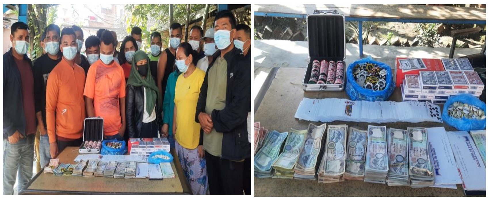 उनीहरुको साथबाट चार लाख ७५ हजार रुपैयाँ, २० बुक तास, क्यासिनोमा प्रयोग हुने चार सय ६४ थान क्वाइन, २८ वटा चेक र कौडा पनि बरामद गरेको छ । घटनाको थप अनुसन्धान भइरहेको प्रहरीले जनाएको छ ।