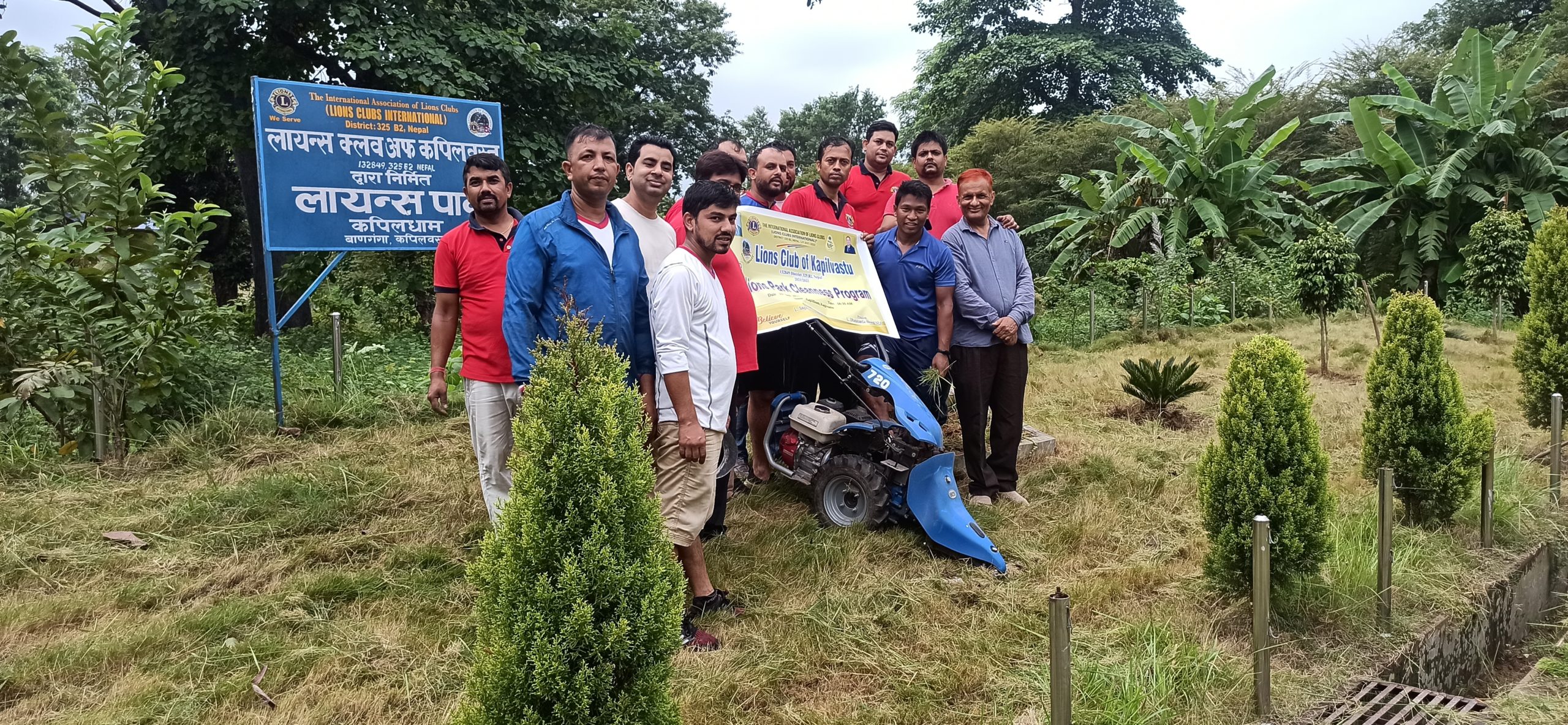 धामको ध्यानकेन्द्र नजिकै करिब २ कट्ठा जग्गमा रहेको पार्कमा बर्षायाम सुरु भएसंगै दुबो झँँगिएको थियो भने बिभिन्न झार र घाँसले रोपेका बहुमुल्य विरुवा, फुलहरु पनि ढाकिएका थिए । विहानभर लायन्सका पदाधिकारीले घाँस काट्ने मेसिन, हँसिया, कोदालो लगायतले सरसफाई गरेपछि अहिले त्यहा सुन्दरता थपिएको छ ।