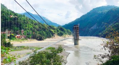 गुल्मी, पाल्पा र स्याङ्गजाको सङ्गमस्थल रिडिमा निर्माणाधीन तीन जिल्ला जोड्ने झोलुङ्गेपुल। उक्त पुल नौ करोड