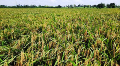 बेलौरी नगरपालिकाको हात्तीबोझाका किसान असारे बडायकले छरुवा प्रविधिबाट खेतमा लगाएको धान पाक्दै।तस्वीरः राजेन्द्रप्रसाद पनेरु/रासस