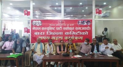 कलैया ।नेपाल कम्युनिस्ट पार्टी (एकीकृत समाजवादी) बारा जिल्ला कमिटी घोषणा भएको छ । कलैयामा बिहीबार