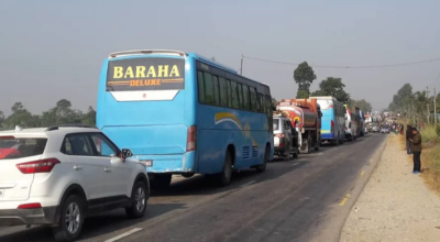 नवलपरासी । पूर्वपश्चिम राजमार्गमा पर्ने पश्चिम नवलपरासीको दाउन्नेमा सडकमै पहिरो खस्दा यातायात सेवा ठप्प भएको