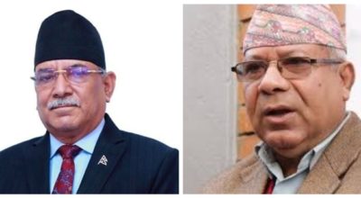 काठमाण्डौ । नेकपा माओवादी केन्द्रका अध्यक्ष पुष्पकमल दाहाल प्रचण्ड र नेकपा एकीकृत समाजवादीका अध्यक्ष माधव