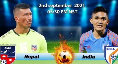 काठमाडौं । नेपालले बिहीबार भारतसँग पहिलो मैत्रीपूर्ण फुटबल खेल खेल्दैछ।त्रिपुरेश्वरस्थित दशरथ रंगशालामा हुने मैत्रीपूर्ण खेल