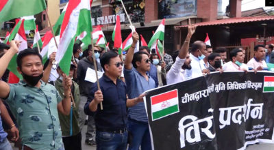 काठमाडौं । चीनले नेपाली भूमि मिचेको भन्दै लोकतान्त्रिक समाजवादी पार्टीनिकट लोकतान्त्रिक युवा संघले काठमाडौंमा विरोध