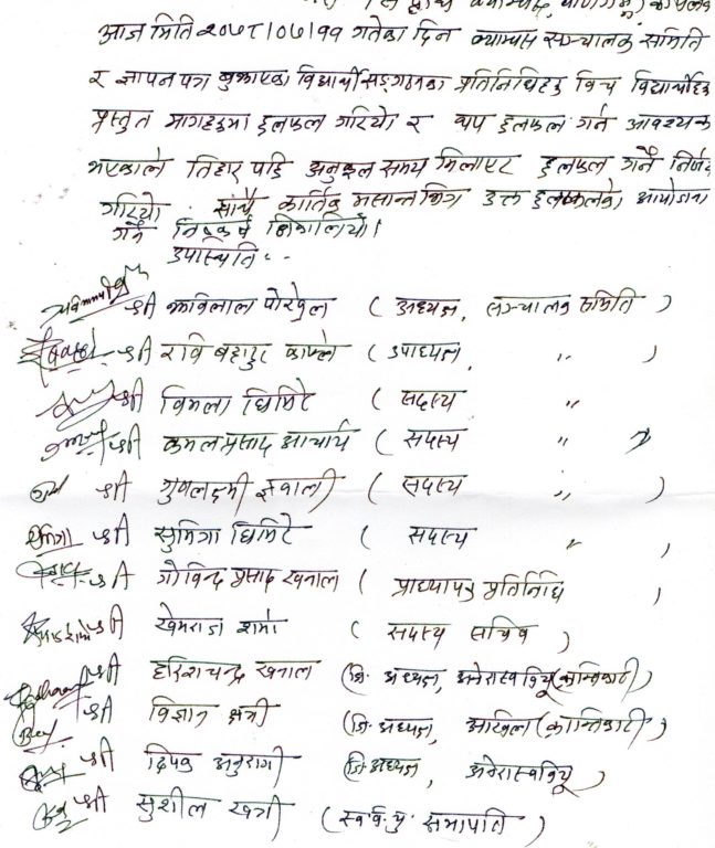 विहीबार क्याम्पस सञ्चालक समितिले ज्ञापनपत्र बुझाउने ४ संगठन अनेरास्ववियू (क्रान्तिकारी) अनेरास्ववियू, अखिल (क्रान्तिकारी) र अखिल छैठौंका जिल्ला अध्यक्षलाई बोलाई वार्ता गराएको छ ।