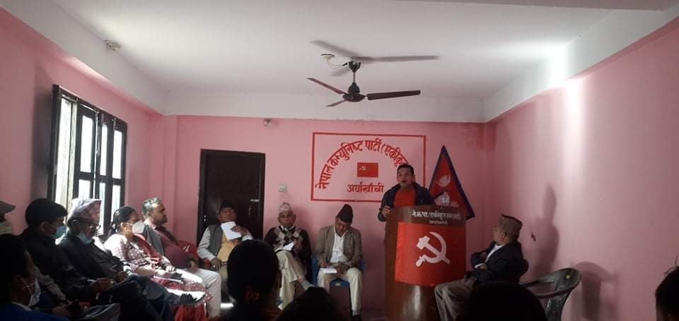 यस्तै जनवर्गीय संगठनको भेला कार्तिक मसान्त भित्र गर्ने पनि बैठकले निणर्य गरेको छ । बैठकमा सम्पूर्ण नगर तथा गाउँ कमिटी इञ्चार्जहरुले स्थानीय तहमा पार्टी अबस्था गतिबिधिको बारेमा रिर्पोटिङ गरेको जिल्ला पार्टी प्रवक्ता शर्माले जानकारी दिनु भयो ।