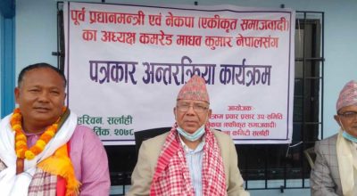 मलंगवा ।नेपाल कम्युनिष्ट पार्टी (एकीकृत समाजवादी) का अध्यक्ष एवं पूर्व प्रधानमन्त्री माधवकुमार नेपालले ओलीले गफबाहेक