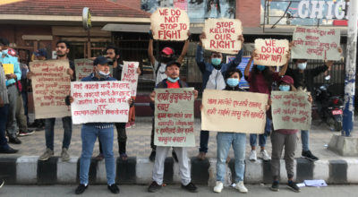 काठमाडौं ।पुस्तौदेखि खाँदै आएको गाईगोरुको मासु खान पाउनुपर्ने माग गर्दै काठमाडौंमा प्रदर्शन भएको छ ।