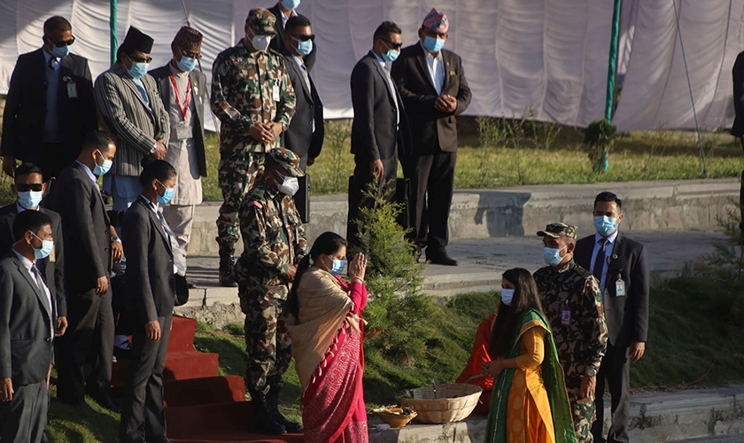 राष्ट्रपतिद्वारा अस्ताउँदो सूर्यलाई अर्घ्य