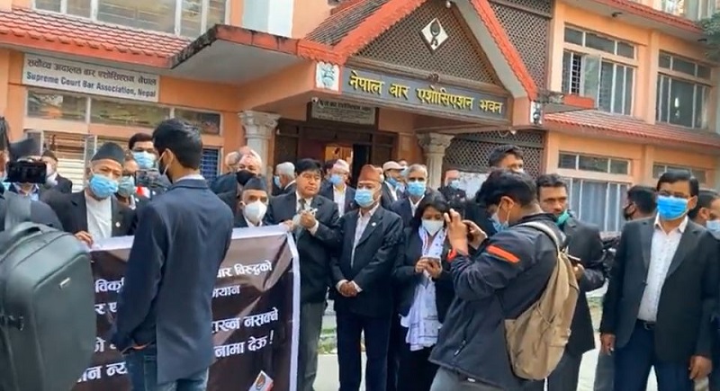 नेपाल बार एसोसिएशनले सर्वोच्च अदालतदेखि बालुवाटारसम्म मार्चपास गर्ने भएको छ । आज मङ्गलवार पनि प्रधानन्यायाधीश चोलेन्द्रशम्शेर जबराको राजीनामा माग गर्दै सर्वोच्चमा धर्ना दिएको बारले पर्सि बिहीवार दिउँसो २ बजे सर्वोच्च अदालतदेखि बालुवाटारसम्म मार्चपास गर्ने जनाएको हो ।