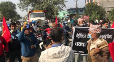 बुटवल ।पेट्रोलियम पदार्थका भएको मूल्य बृद्धिको विरोधमा अखिल क्रान्तिकारीले एक घण्टा चक्का जाम गरेको छ