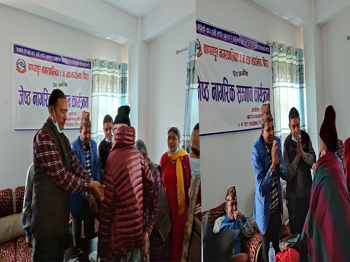 शुक्रबार वडा कार्यलयमा सम्पन्न जेष्ठ नागरिक सम्मान कार्यक्रममा नगरभित्र रहेका ३ सय २५ भन्दा बढी जेष्ठ नागरिकलाई ‘ज्याकेट’ र न्यानो ‘सल’ वितरण गरेको वडा अध्यक्ष विष्णु पौडेलले बताउनुभयो ।
