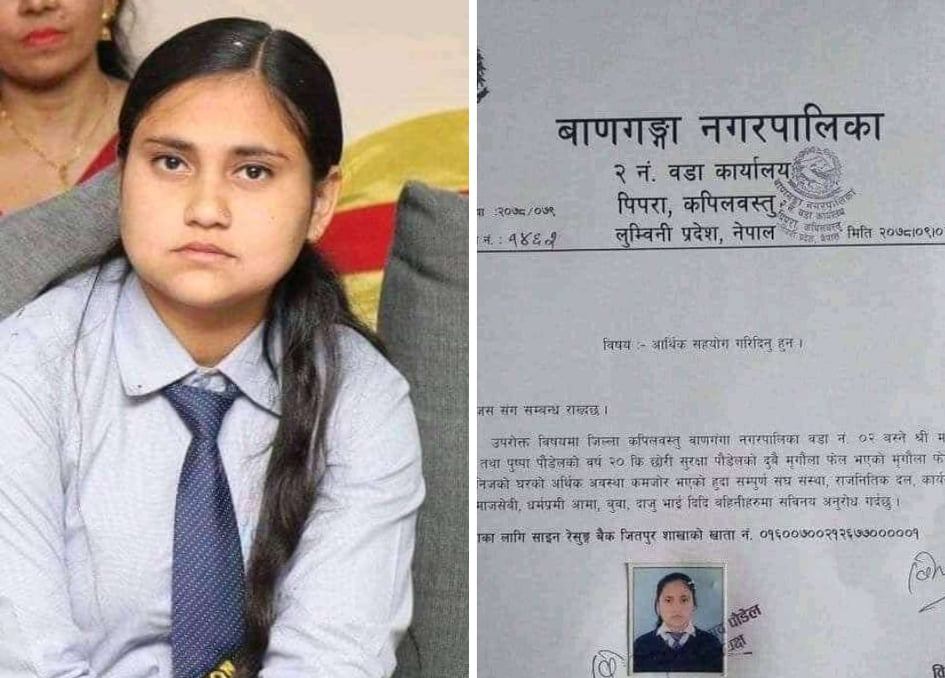 घरबाटै रकम जुटाउन अवस्थाले नसक्ने भन्दै बुवा माधव पौडेलले वडालाई समेत जानकारी दिएको भन्दै वडाध्यक्ष पौडेलले आर्थिक सहयोग गर्न आग्रह गर्नुभएको छ । सहयोगको लागि साइन रेसुङ्ग बैंक जितपुर शाखाको खाता नं ०१६००७००२१२६७७०००००१ मा रकम जम्मा गर्न सकिने छ ।