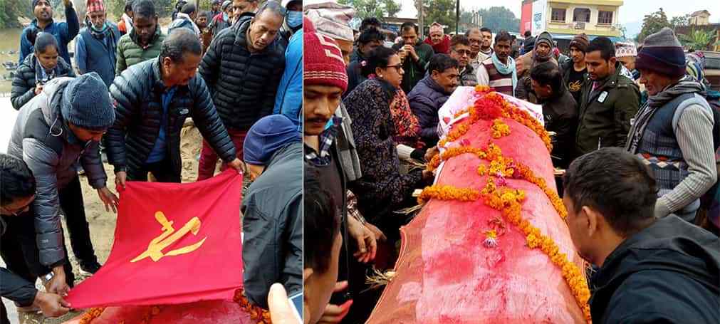 नेकपाका केन्द्रीय सदस्य भेषराज भुसाललाई पितृशोक परेको छ । भुसालका ९३ वर्षीय बुबा नीलकण्ठ भुसालको पुस १४ गते बुधबार साँझ शिवराज नगरपालिका वडा नं. ३ खरेन्द्रपुर कपिलवस्तुमा निधन भएको हो । मृतक नीलकण्ठ भुसालको आज बिहान शिवराजस्थित बेलखोलामा अन्तिम संस्कार गरिएको छ । नेकपाका महासचिव विप्लवले अन्तिम संस्कारका क्रममा आयोजित श्रद्धाञ्जली कार्यक्रममा सम्बोधन गर्दै मृतकप्रति श्रद्धाञ्जली र नेकपा नेता भेषराजलगायत शोकसन्तप्त परिवारजनप्रति समवेदना प्रकट गरेका छन् ।