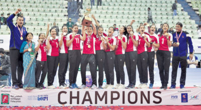 काठमाण्डौ । बङ्गलादेशमा सम्पन्न एसियन सिनियर सेन्ट्रल जोन महिला भलिबल च्याम्पियनशिपको उपाधि विजेता नेपाली महिला