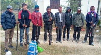 बाँके ।बाँके राष्ट्रिय निकुञ्जमा चोरी सिकार गरेको आरोपमा ६ नाल भरुवा बन्दुकसहित नौ जना पक्राउ