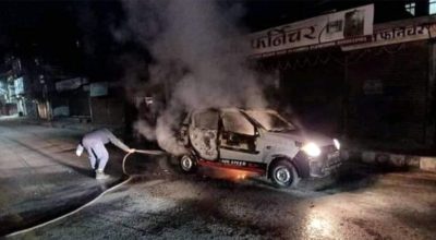 काठमाडौं ।काठमाडौंको गोंगबुमा अज्ञात समूहले ट्याक्सीमा आगजनी गरेका छन् । बिहीबार बिहान प्रदेश ३-०१ ००२