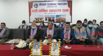 मायादेवी अनलाइन, वाणगंगा ।११ बुँदे घोषणापत्र जारी गर्दै नेपाल पत्रकार महासंघ कपिलवस्तु शाखाको १० औं