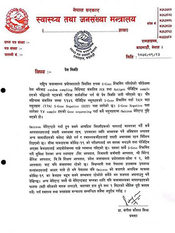 नेपालमा थप २४ जनामा ओमिक्रोन भेरियन्ट पुष्टि