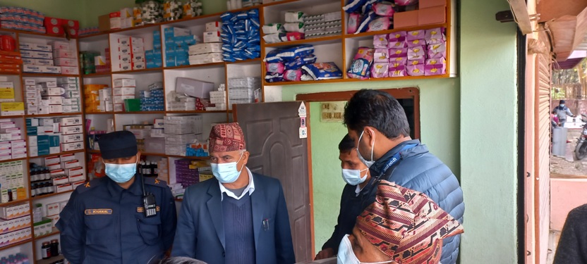 प्रजिअ, सहायक प्रजिअ, जिल्ला प्रहरी कार्यालयका प्रहरी निरीक्षक, घरेलु तथा साना उद्योग व्यवसायी समितिका प्रमुख, उद्योग अधिकृत, जिल्ला स्वास्थ्य कार्यालय, औषधि व्यवसायी समिति, नेपाल पत्रकार महासङ्घका प्रदेश सदस्यलगायतको टोलीले औषधि पसलको अनुगमन गरेको हो ।