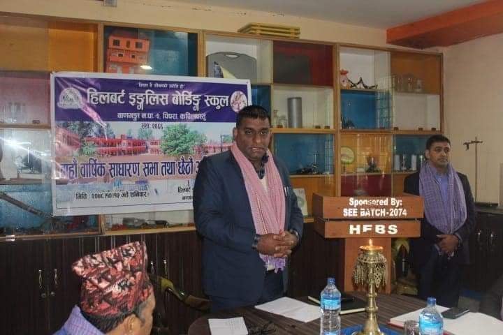 हिलबर्ट इङ्ग्लिस बोर्डिङ्ग स्कुल विद्यालय व्यवस्थापन समिति अध्यक्षमा पुनः दीपक खनाल निर्वाचित हुनुभएको छ । सनिवार हिलवर्ट स्कुलमा सम्पन्न समितीको १२ औँ साधारण सभा तथा छैठौं अधिवेशनबाट खनाल अध्यक्षमा चयन हुनुभएको हो ।