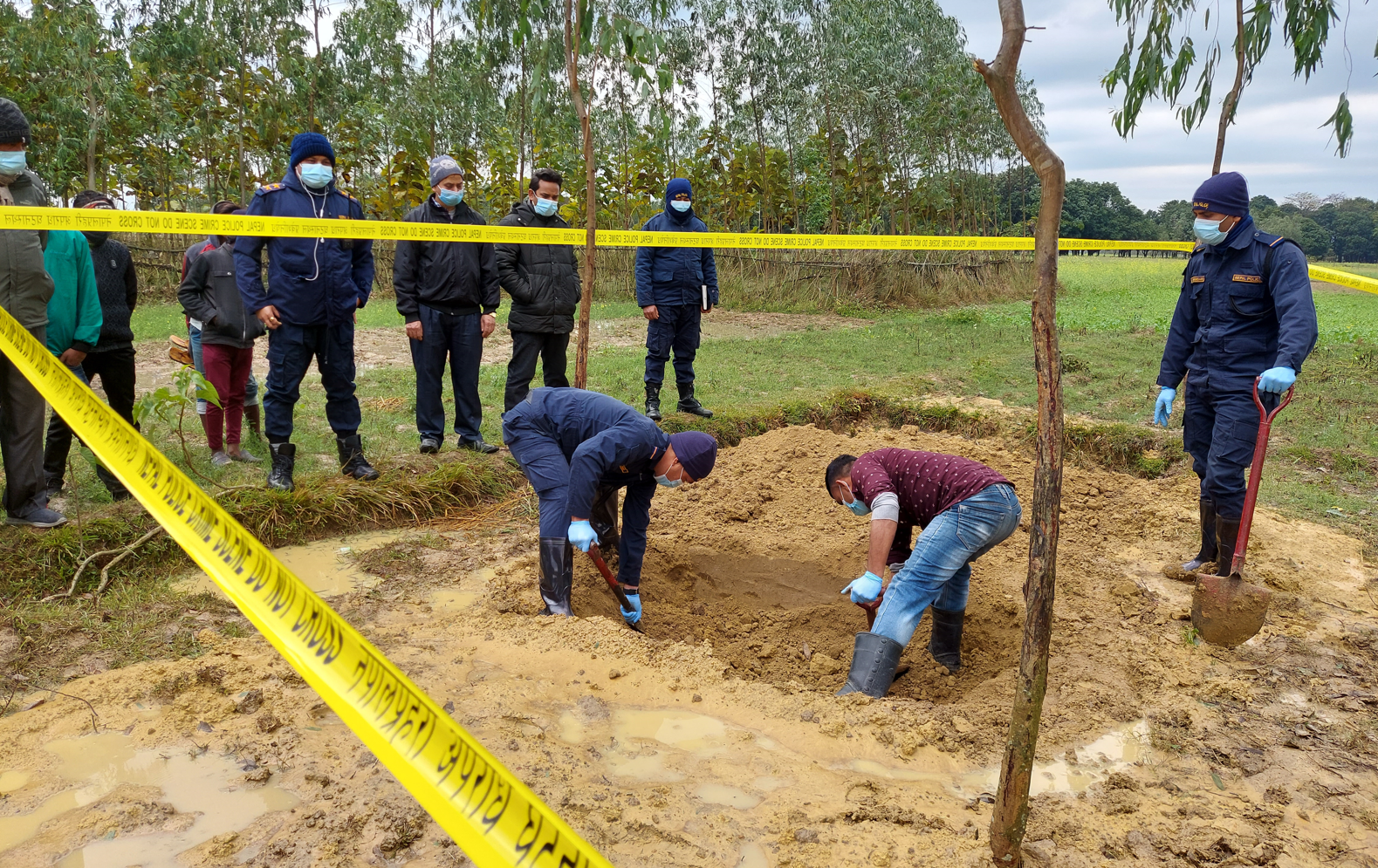 जिल्ला प्रहरी कार्यालय कपिलवस्तुबाट खटिएको अनुसन्धान टोलिले निजहरुलाई नियन्त्रणमा लिई आबश्यक अनुसन्धान गर्दा मृतक २ महिनाको गर्भवती भएको र मृत्यु शंकास्पद भएकोले आज शुक्रबार लास उत्खननको लागि जिल्ला अस्पताल तौलिहवा कपिलवस्तुका डा.जावेद अख्तर खान, सहायक जिल्ला सरकारी न्यायाधीवक्ता खडानन्द पोख्रेल र जिल्ला प्रहरी कार्यालय कपिलवस्तुबाट प्रहरी नायव उपरिक्षक धर्मराज भण्डारीको कमाण्डमा खटिईएको टोलिले घटनास्थलबाट लाश उत्खनन गरी पोष्टमार्टमको लागि लुम्बिनी प्रदेशिक अस्पताल बुटवल पठाईएको जनाकारी दिएको छ ।घटनाबारे थप अनुसन्धान भैरहेको प्रहरीको भनाई छ ।