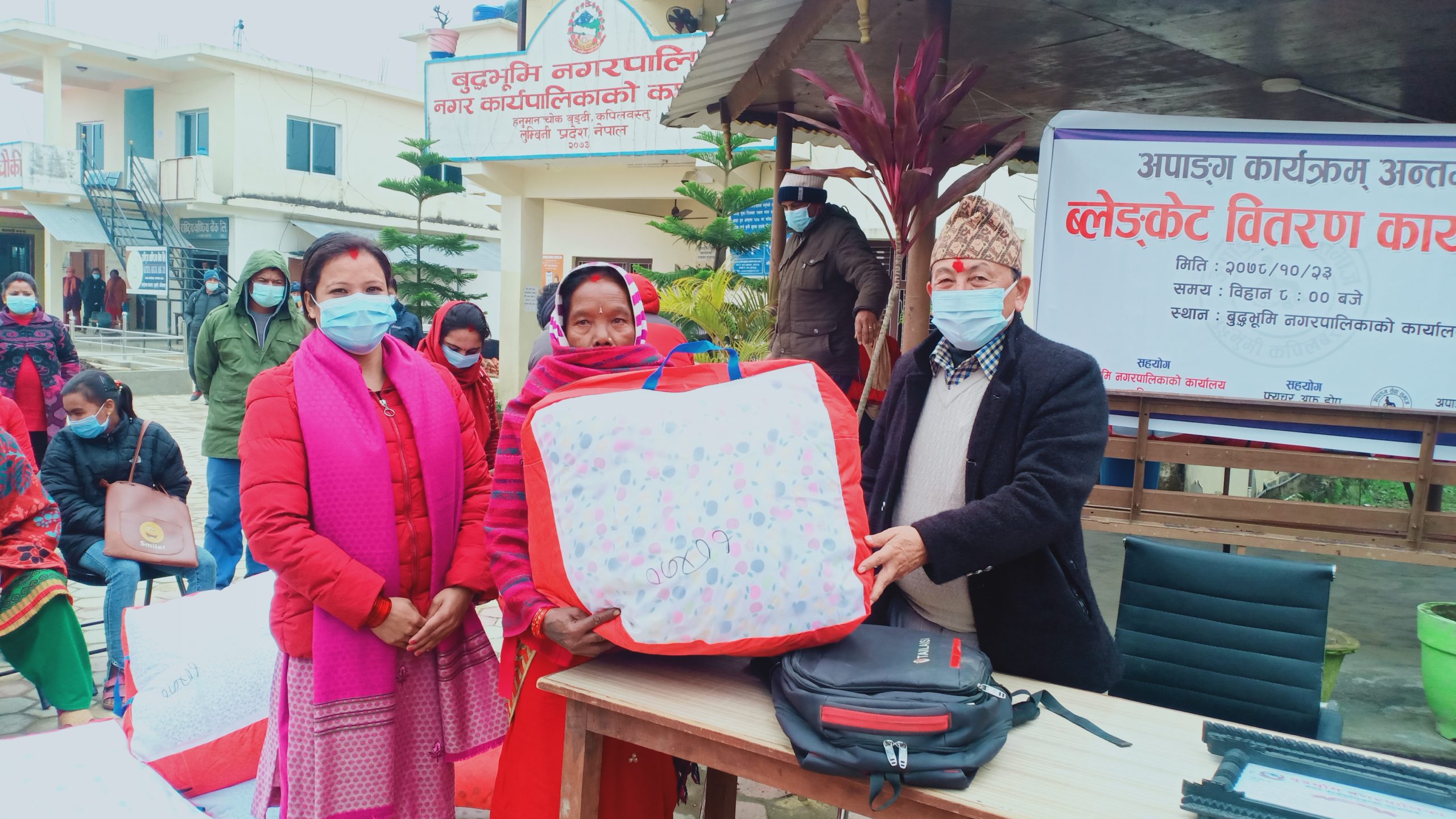 कपिलवस्तुको बुद्धभूमि नगरपालिकाका १ सय अपाङ्गता भएका व्यक्तिलाई ब्लेङ्केट वितरण गरिएको छ ।