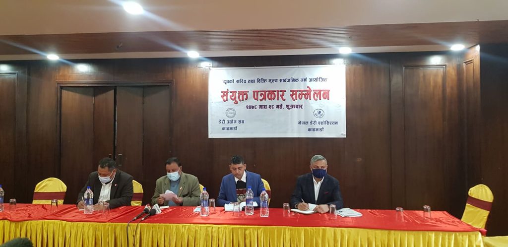 शुक्रबार नेपाल डेरी एसोसियसन र डेरी उद्योग संघले संयुक्त पत्रकार सम्मेलन गर्दै दूधको प्रतिलिटर मूल्य १० रुपैयाँले बढाएर ८६ रुपैयाँ कायम गरेको जानकारी दिएको हो ।