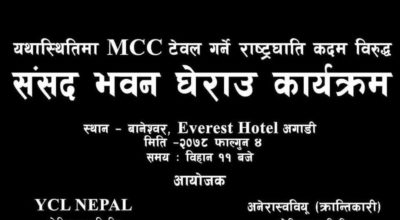 काठमाडौं । एमसीसीको विषयमा पार्टी नै स्पष्ट नरहेको बेला माओवादी केन्द्रको भ्रातृ संगठन भने खुलेर