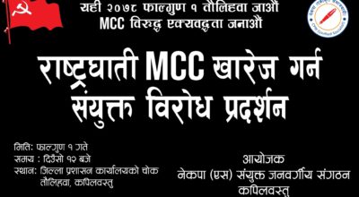 मायादेवी अनलाइन, वाणगंगा ।अमेरिकी मिलिनियन च्यालेन्स कर्पोरेसन (एमसीसी)का विरुद्ध नेकपा (एकीकृत समाजवादी) कपिलवस्तुका जनसंगठन सडक
