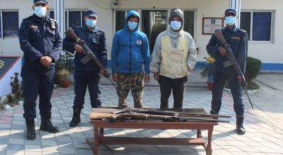 मायादेबी अनलाइन, जितपुर । कपिलवस्तुको बाणगंगा नगरपालिकामा भरुवा बन्दुकसहित दुई जना पक्राउ परेका छन् ।नगरको