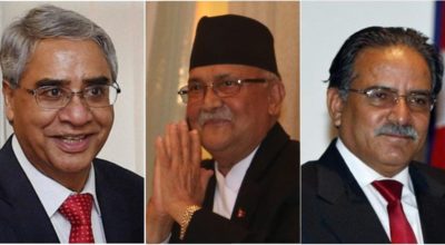 काठमाण्डौ । प्रधानमन्त्री शेरबहादुर देउवा, एमाले अध्यक्ष केपी शर्मा ओली र माओवादी अध्यक्ष पुष्पकमल दाहाल