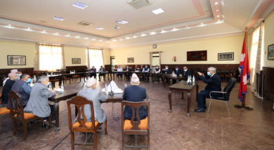 काठमाण्डौ । स्थानीय तह निर्वाचनबारे रणनीति बनाउन सत्ता गठबन्धन दलको बैठक बस्दै छ । प्रधानमन्त्रीको