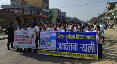 अनिश बन्जाडे, कपिलवस्तु । विश्व मृगौला दिवसको अवसरमा बाणगंगा नगरपालिकामा जनचेतनामुलक र्याली कार्यक्रम सम्पन्न भएको